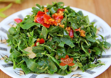 2、起锅烧水,将柳芽儿焯水迅速捞出。