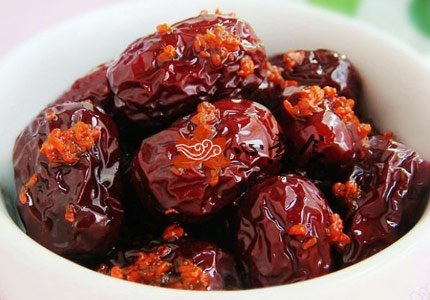 2、把红枣放入盘中,放到锅中蒸20分钟。