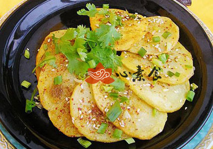 3、土豆片煎至两面金黄。