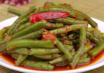 4、放入豆角,陈醋、盐翻炒均匀入味即可出锅。