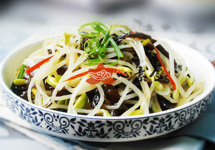 5、将炒好的木耳加入到豆芽中拌匀(或将豆芽加入锅中炒匀)即可。[sushi.laoyanhuo.com]