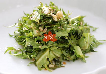 4、倒入酱汁熬至粘稠趁热浇在苦菊上拌匀即可。