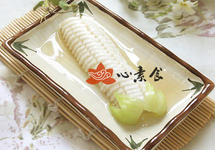 9、放入冰箱腌上1小时,将腌好的萝卜和小白菜叶片摆成玉米状即可。[sushi.laoyanhuo.com]