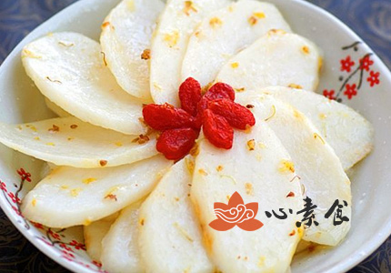 贴士:糖桂花的特殊香气使山药片芬芳甜蜜,适量苹果不仅增添果香,还增添一丝酸甜的味道,生津开胃,老少皆宜。