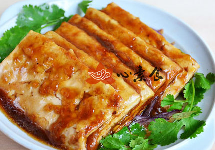9、将芡汁均匀淋在豆腐上,两边摆上香菜或氽后的青菜,即可。[sushi.laoyanhuo.com]
