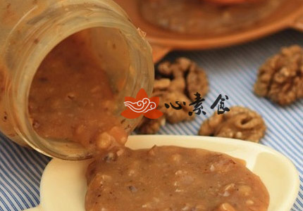 5、再倒入核桃碎,搅拌均匀。隔冰水放凉。