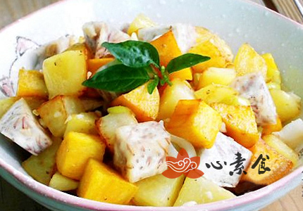 1、土豆、红薯、香芋分别去皮切小块。