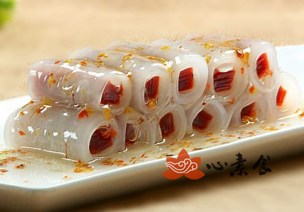 6、将调好的糖醋汁浇在水晶卷上,再淋入桂花糖即可!