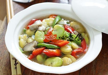 4、加适量盐大火烧开,调中火煮至蚕豆软烂熟透。