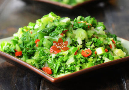 6、锅中放油烧热,放入红椒丁、芥菜翻炒,放适量盐调味即可。[sushi.laoyanhuo.com]