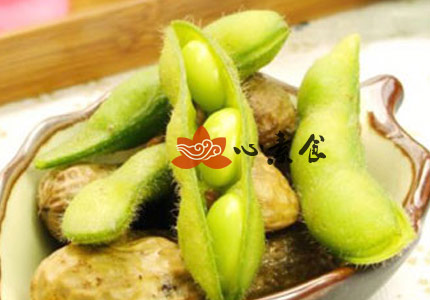 2、大火烧开水,放入姜片,盐,再将毛豆、花生放入煮熟,凉水过凉沥水。