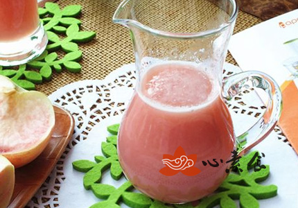 4、桃子全部放完后,关掉原汁机,打开橡皮塞,蜜桃汁流入果汁杯内。