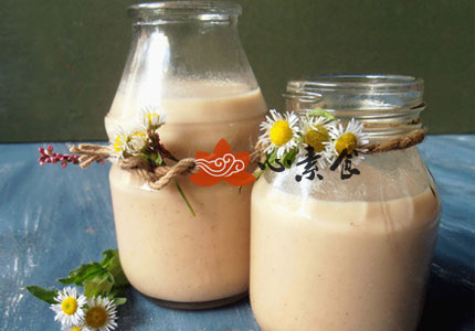 5、用保鲜膜覆于打好的草本鲜奶上,倒出无沫的植物奶浆。[XinSuShi.com]