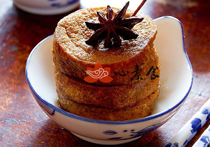 5、把煎好的素鸡放入汤汁中烧煮十几分钟,汤汁收到稍干,即可起锅。