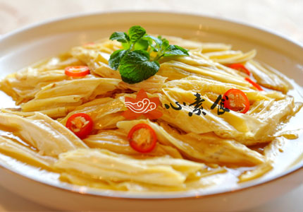 3、把腐竹绰掉水分后,放入盘中倒入汁一起拌入味装盘即可。