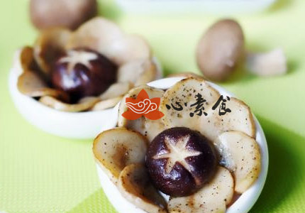 2、香菇去蒂,用到雕出花型。杏鲍菇切片。