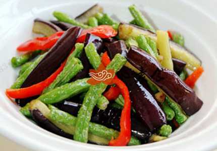 7、下入茄子和芸豆,生抽、盐大火翻炒如味即可。[sushi.laoyanhuo.com]