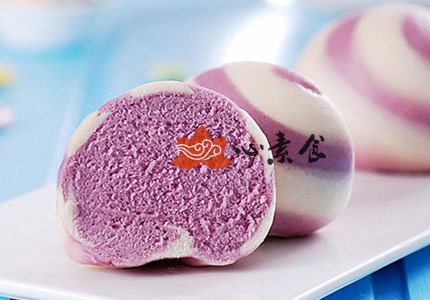 3、分别把白色、紫色面团和揉,直至面皮表面光滑。