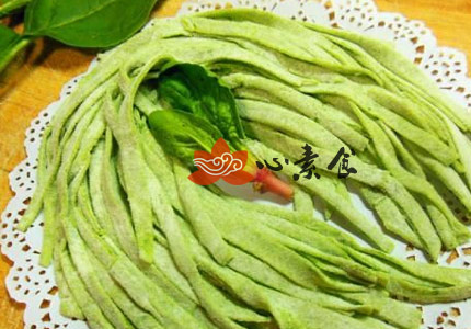 2、在面粉中加入一个鸡蛋,再加入适量的菠菜汁,揉成光滑的面团。
