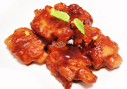 9、放入做好的素排骨雏形,简单翻炒,收干汤汁,关火出锅即可。