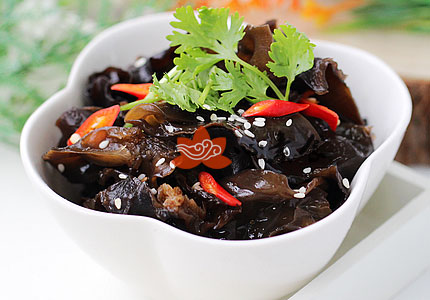 1、木耳泡发洗净,焯水约3分钟,捞出过凉水沥干。