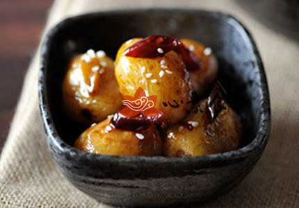4、放入处理好的小土豆、姜丝、盐、干辣椒,继续煮,煮到汤水逐渐减少后,撒上白芝麻即可。[XinSuShi.com]