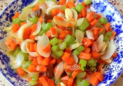 1、这是一道快手菜,火候掌握不好,可以先将胡萝卜、西芹分别焯熟再过凉水(西芹焯的时间要短一些)。