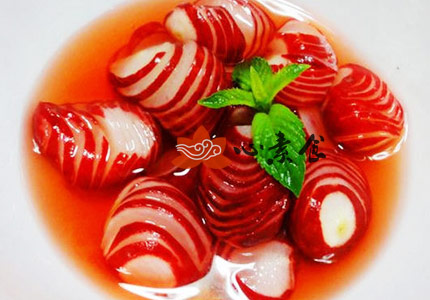 5、腌制好的樱桃萝卜挤干后,将调好的调料汁倒入拌匀即可。[sushi.laoyanhuo.com]